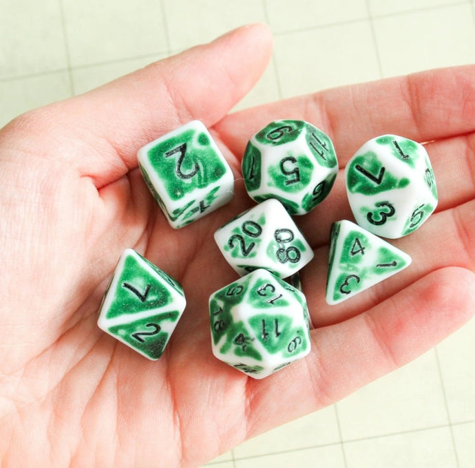 Archaic Light Green RPG Dice Set by Mystery Dice Goblin