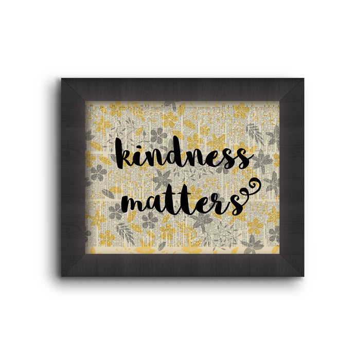Kindness Matters Floral Print Recycled Book Page Framed Art