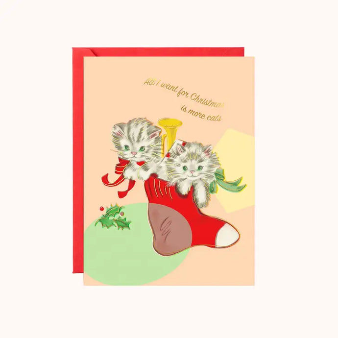 Reproduction Vintage Cat Christmas All I Want For Christmas is More Cats Holiday Card