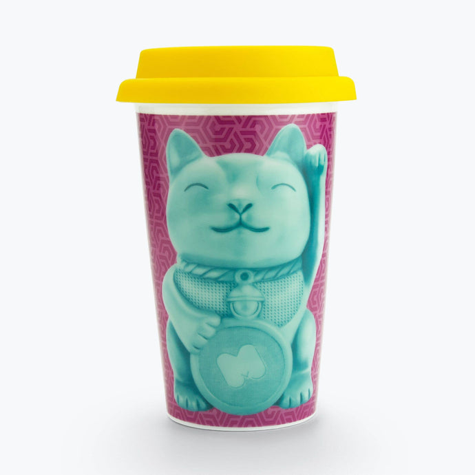 Lucky Cat Double Wall Travel 12.3 oz Coffee Mug