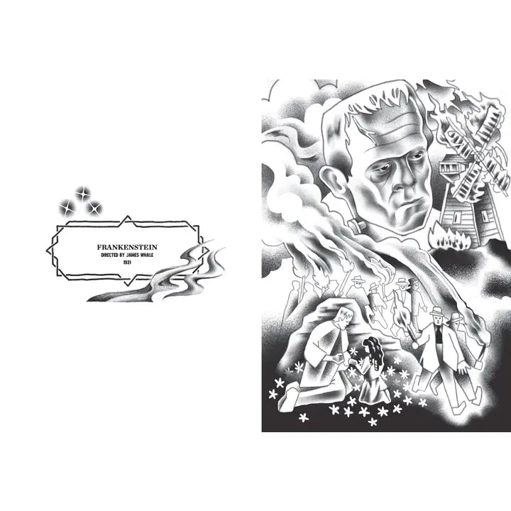 What color are Freddy's finger blades, the Alien chestburster, Pennywise's toothy smile, the Frankenstein monster's broken heart, The Thing's head with legs, or the Blair Witch's evil woods? It's up to you! This highly unique coloring book features a curated selection of the best, most unforgettable, visually inspiring horror movies from the 1920s to today in dimensional black-and-white illustrations teeming with detail and action, capturing the feel of each film with poster-like impact.