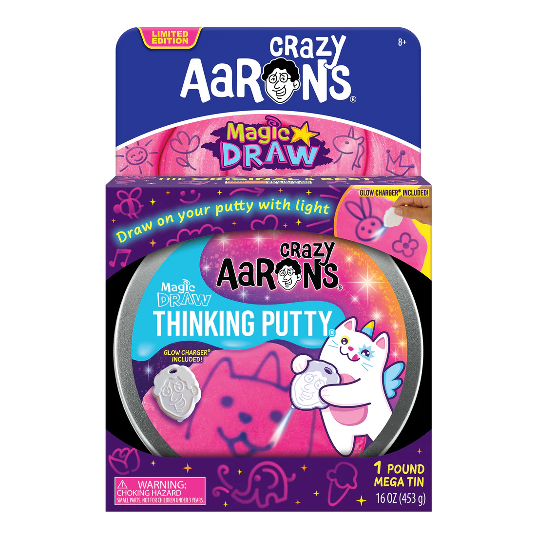 At first glance, Magic Draw Thinking Putty® may look like ordinary sparkly pink putty, but it's so much more! This squishy, shimmering putty doubles as a creative canvas. With the included Glow Charger®, you can doodle, scribble, and design to your heart's content. Then, switch off the lights and watch as your artwork glows in dreamy purple, turning your creations into glowing masterpieces!